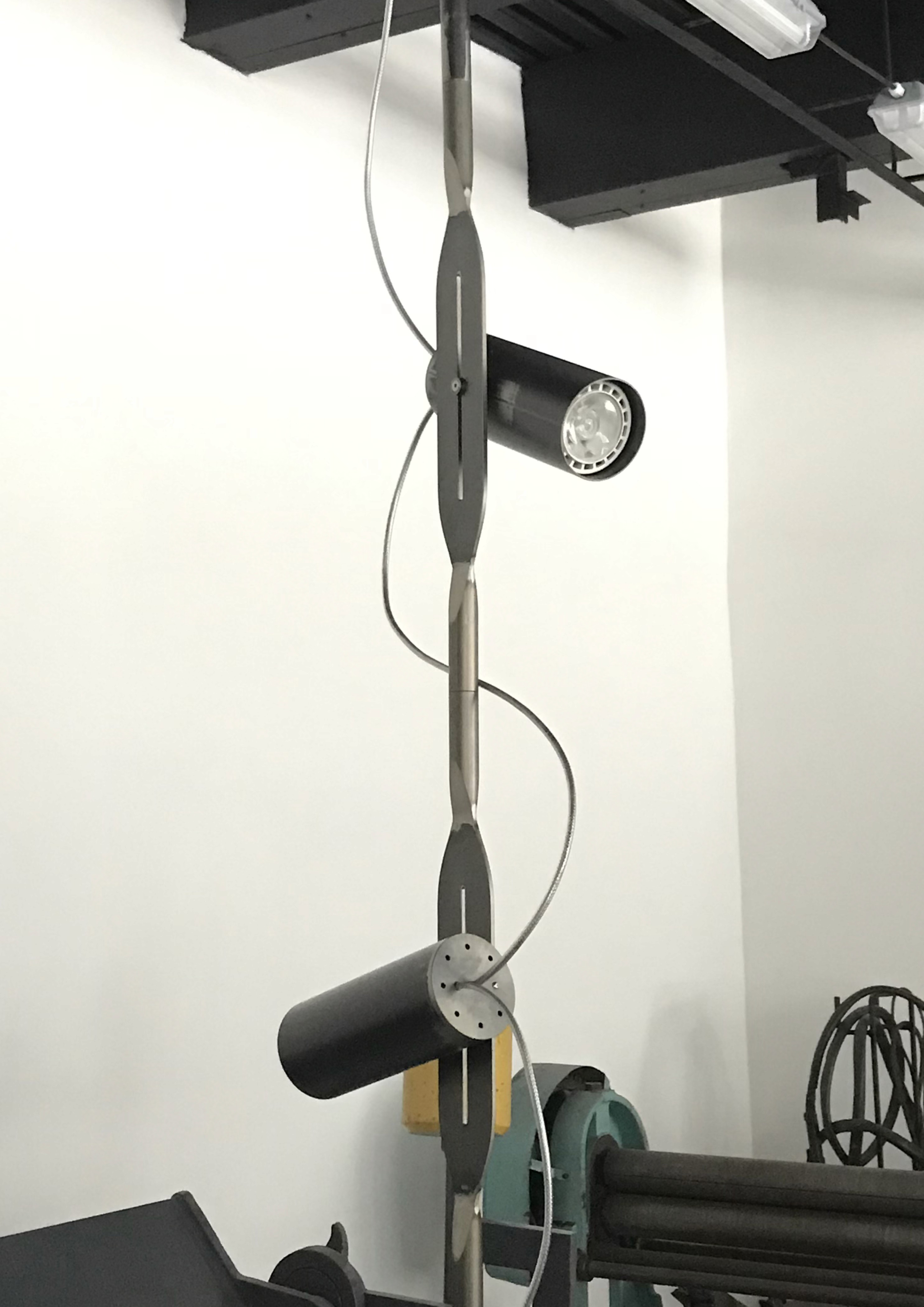 The series of spotlights distributed throughout the monastery aesthetically and materially complements the chandelier designed for the crypt of Saint Procopius.