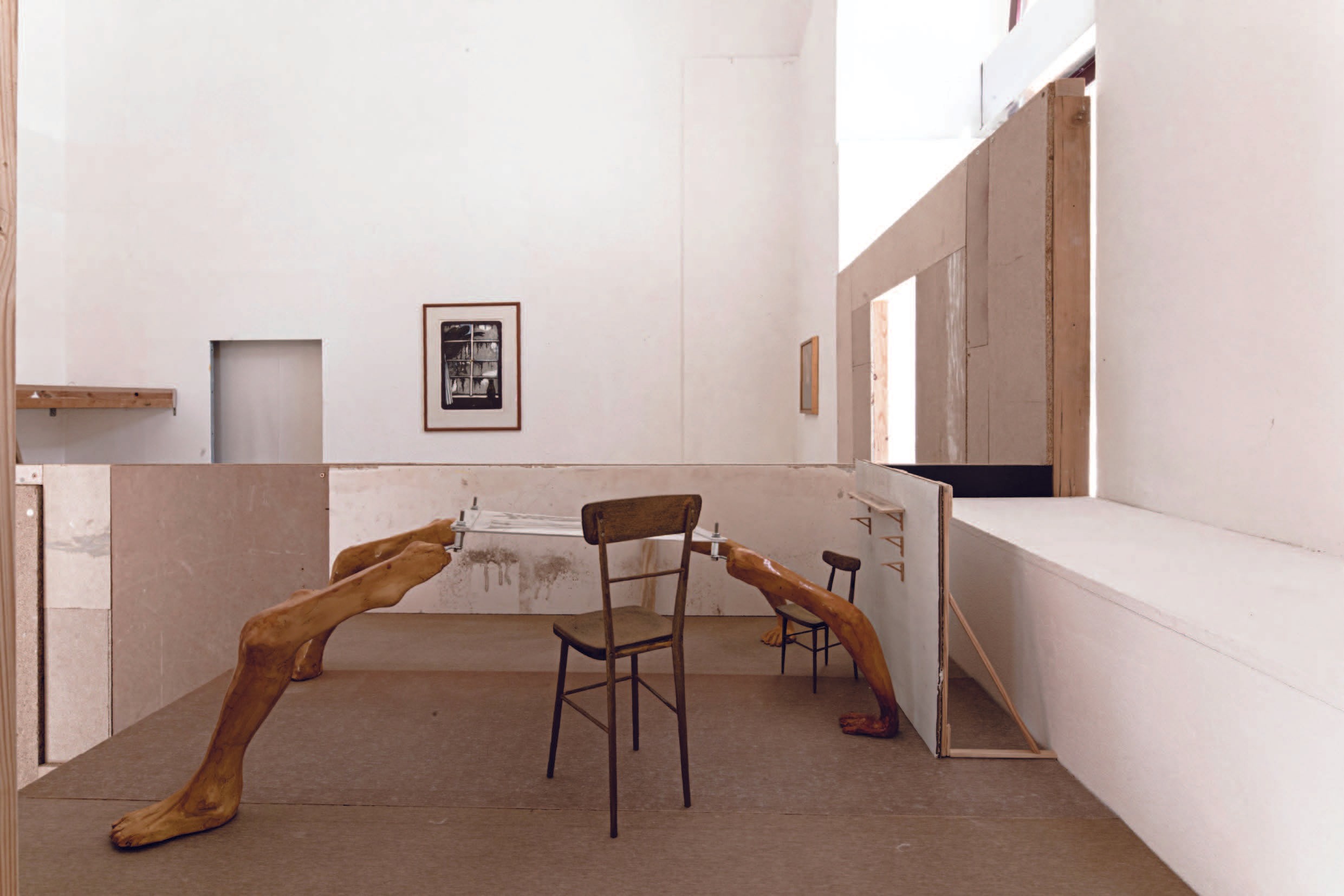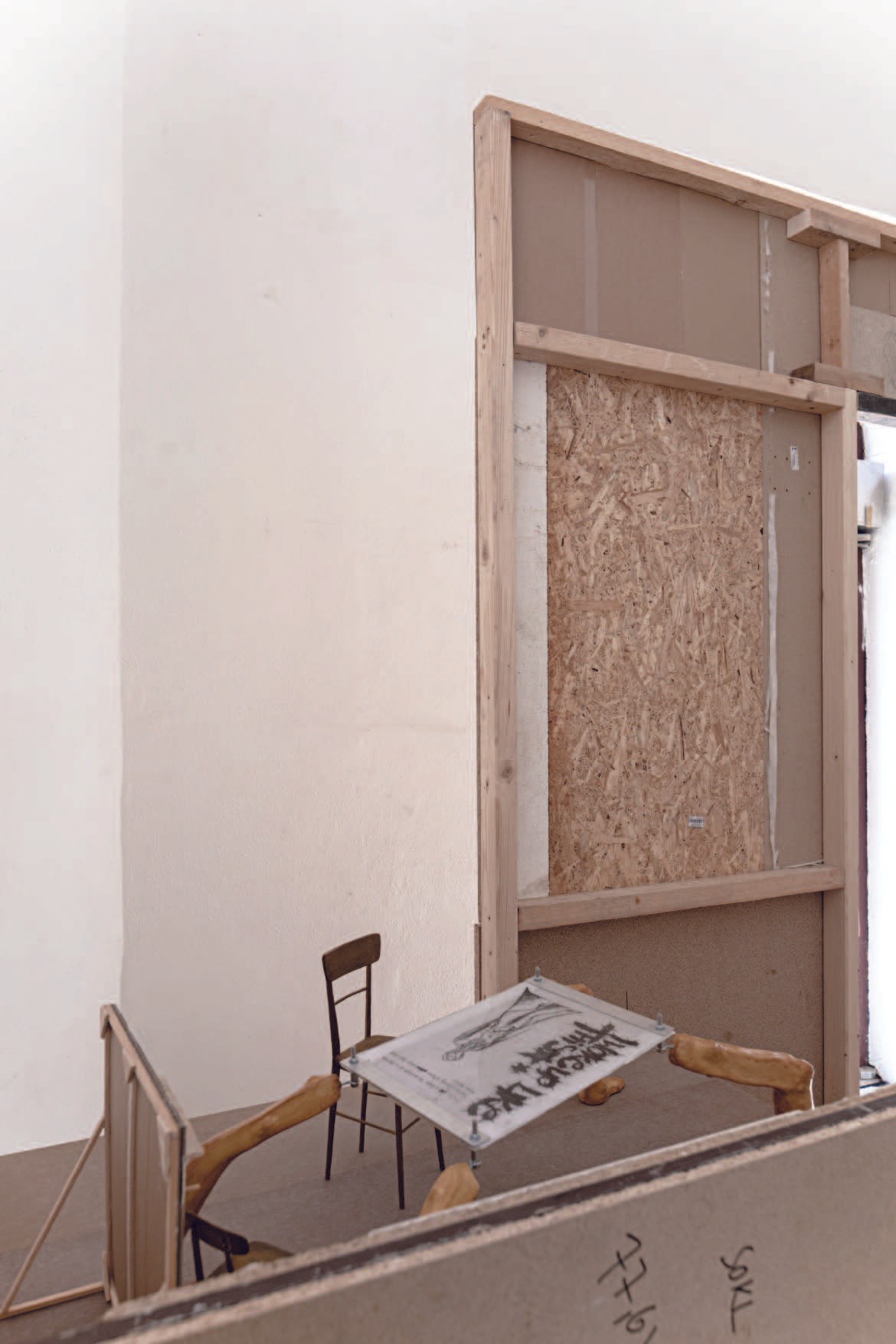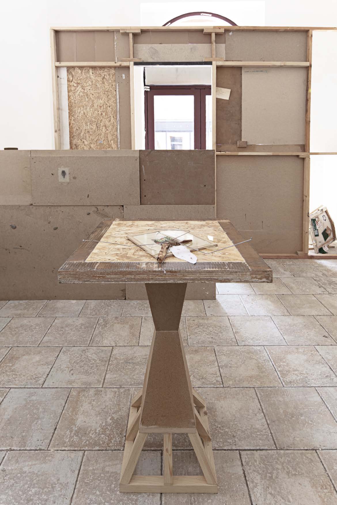The work of, relating to or arising from the root is a scenographically conceived installation. The crucial point is the environment of the apartment, which, thanks to memory, is assembled and then transform into a new imaginary form. The installation of the now fictional scene draws heavily on the principles of visionary science fiction, which allows us to look into the future and create alternative scenarios based on real experiences.