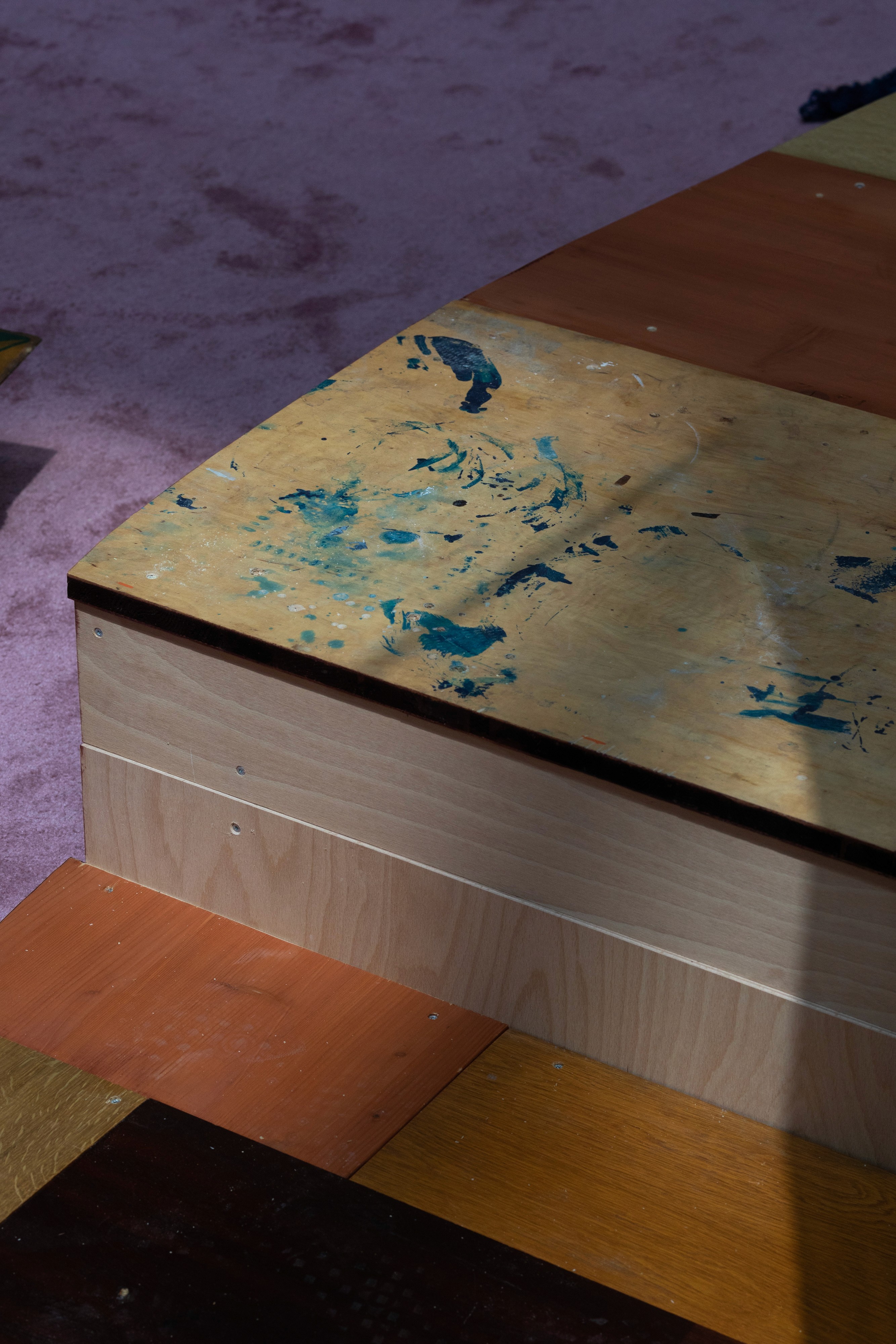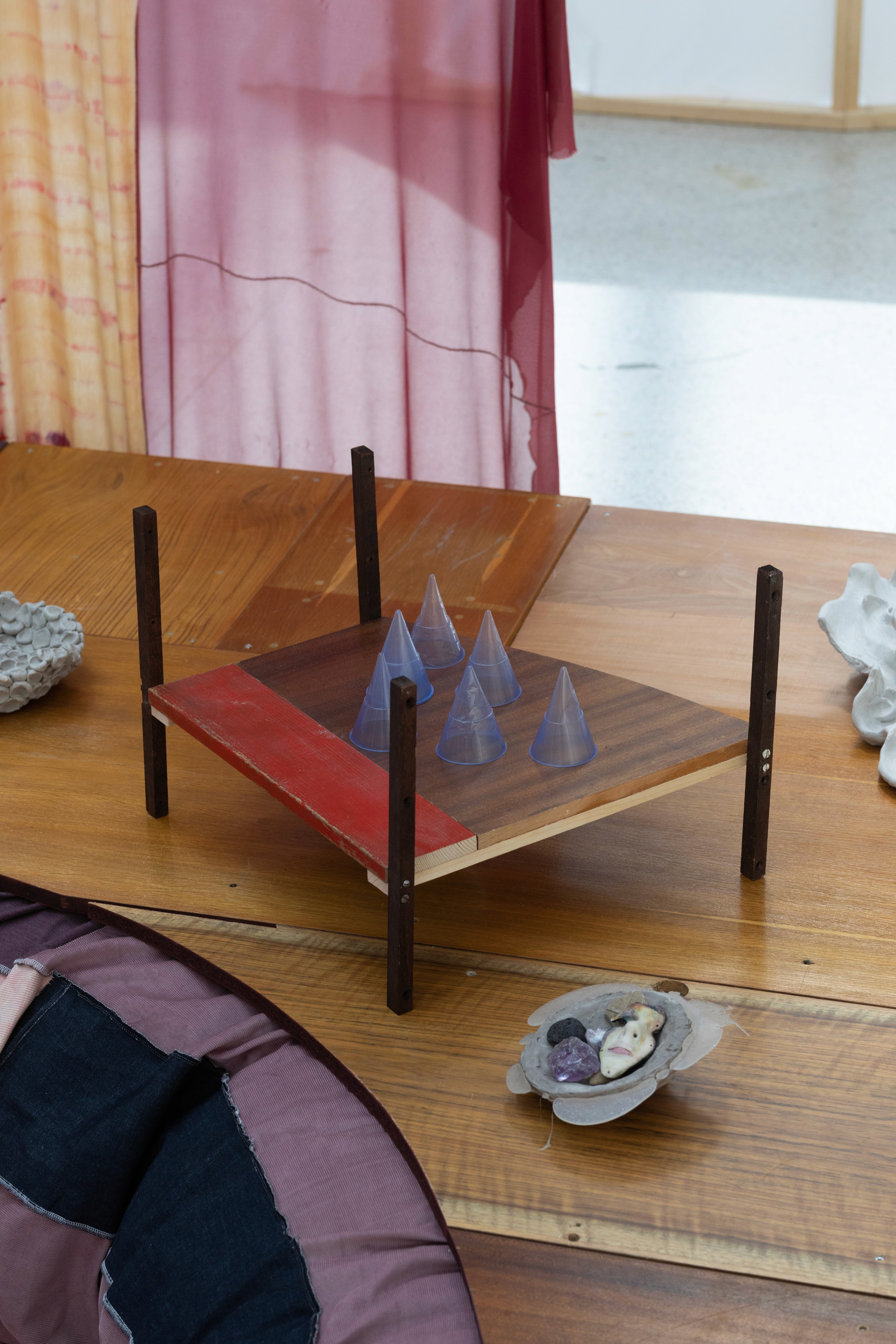 "Every Morning Is the Morning I Wanted to Wake Up Earlier" is a site-specific reading environment conceived for the reading performances of björnsonova, exhibiting at the Biennale Matter of Art Prague. Its main structure is assembled from scraps and discarded desks, combining damaged furniture with cardboard.